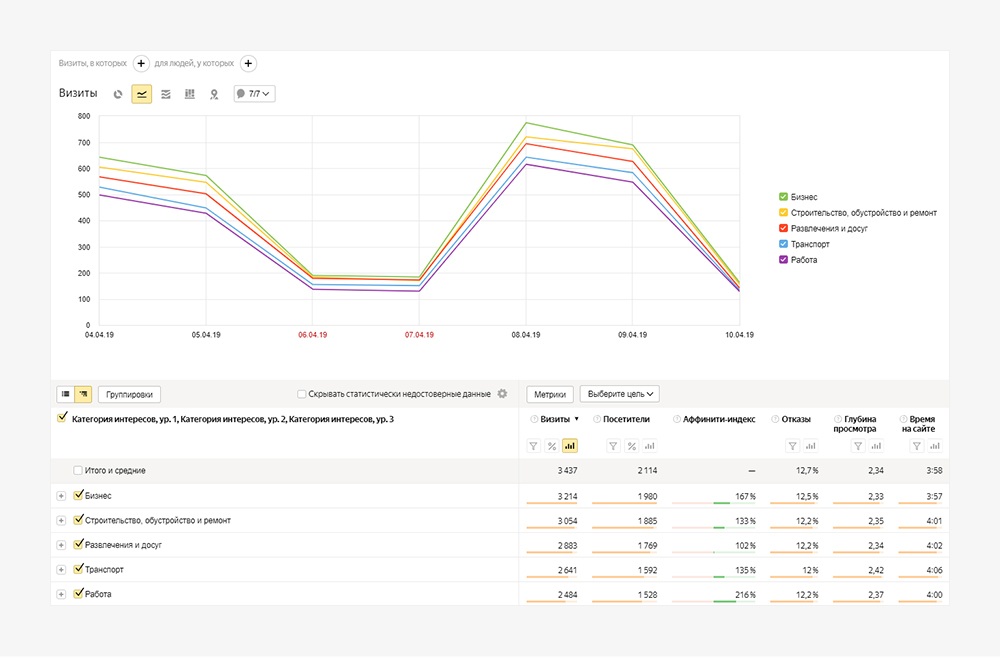 Отчет «Долгосрочные интересы» в Яндекс.Метрике