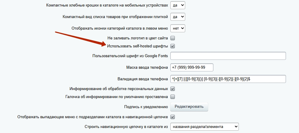 Поставьте галку в поле «Использовать self-hosted шрифты» и сохраните изменения.