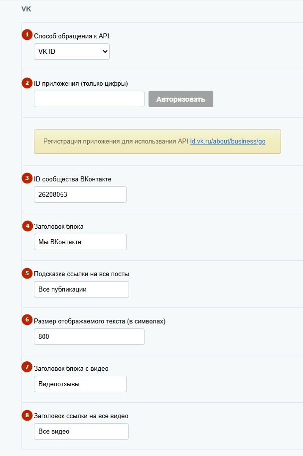 Чтобы виджет заработал, нужно получить токен API. Сделать это можно через создание своего приложения для ВКонтакте.