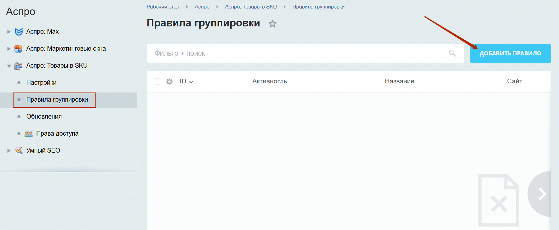 Теперь перейдите на следующую вкладку и добавьте правило группировки.