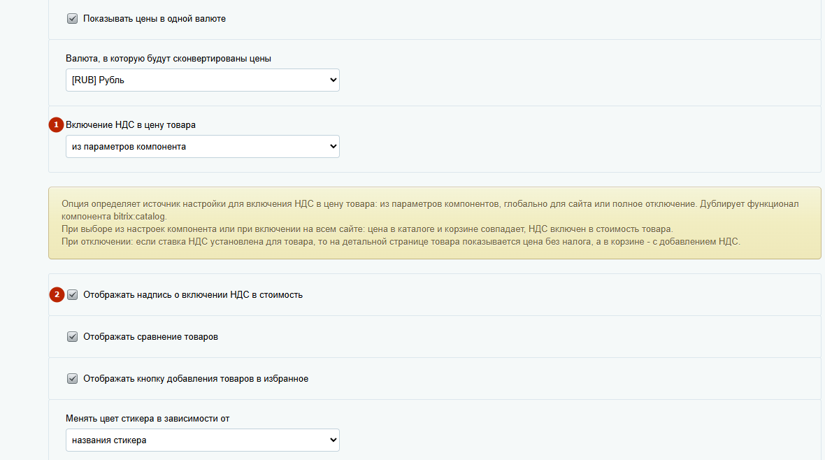 Для всего сайта — НДС включен в цену глобально, параметры компонентов игнорируются.