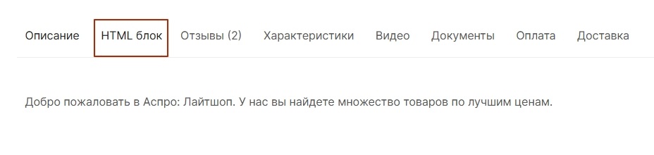 Рассмотрим популярный у наших пользователей запрос — вывод свойства типа HTML в таб на детальной странице товара.