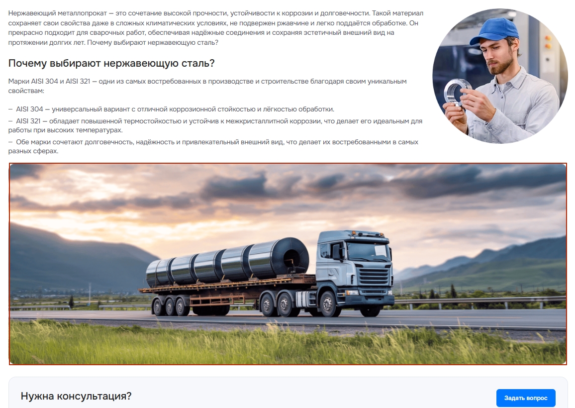 В решении предусмотрен альтернативный вариант добавления изображения в текст посадочной страницы. Такой вариант полезен, если вы хотите добавить сразу несколько картинок на посадку. Для этого необходимо: