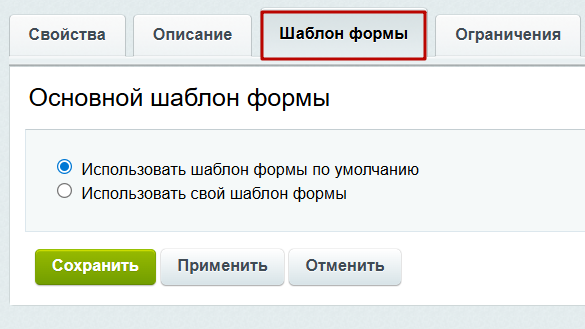 Во вкладке «Шаблон формы» вы можете выбрать шаблон по умолчанию или свой собственный.