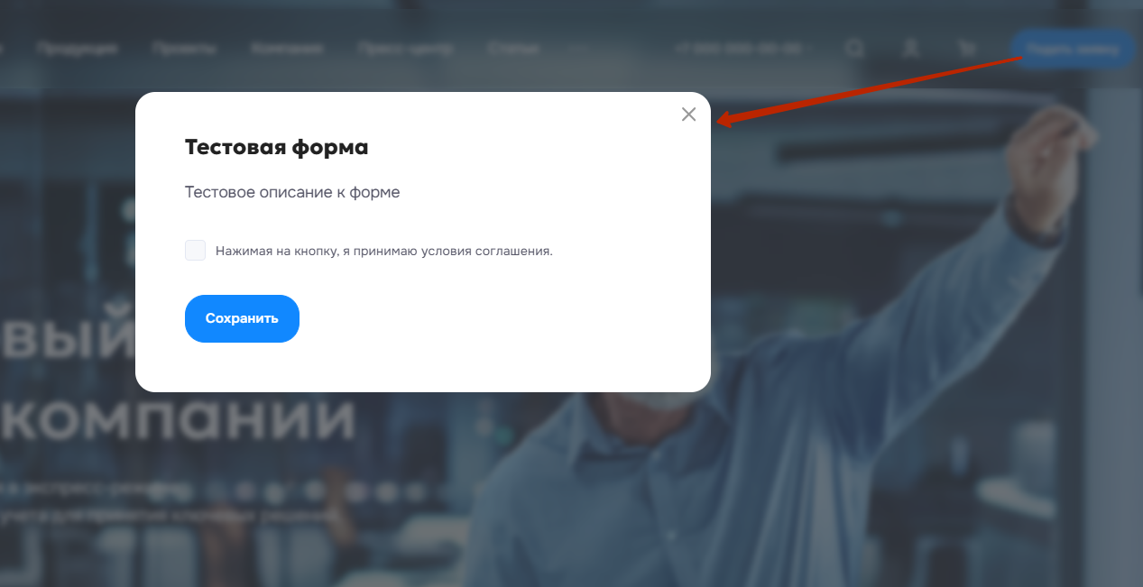 В этой статье рассмотрим, как создать пользовательскую форму и добавить ее в кнопку шапки сайта.