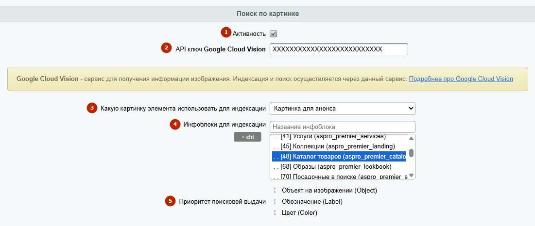 4. Выбрать, какой тип картинок использовать для индексации. То есть, что именно сопоставлять с загруженным изображением — анонсное или детальное фото товара.