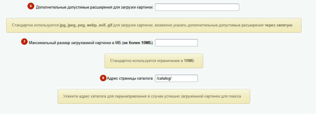 7. Задать дополнительные расширения для загрузки картинок через запятую. Стандартно используются: jpg, jpeg, png, webp, avif, gif.