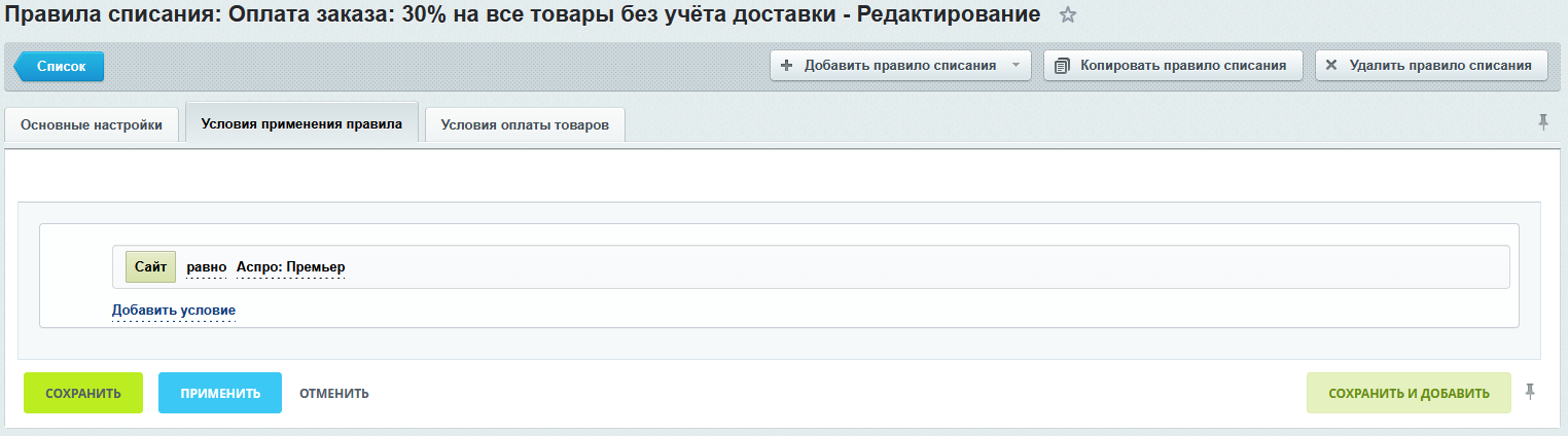 Добавим только одно условие применения — ограничение на розничный сайт.