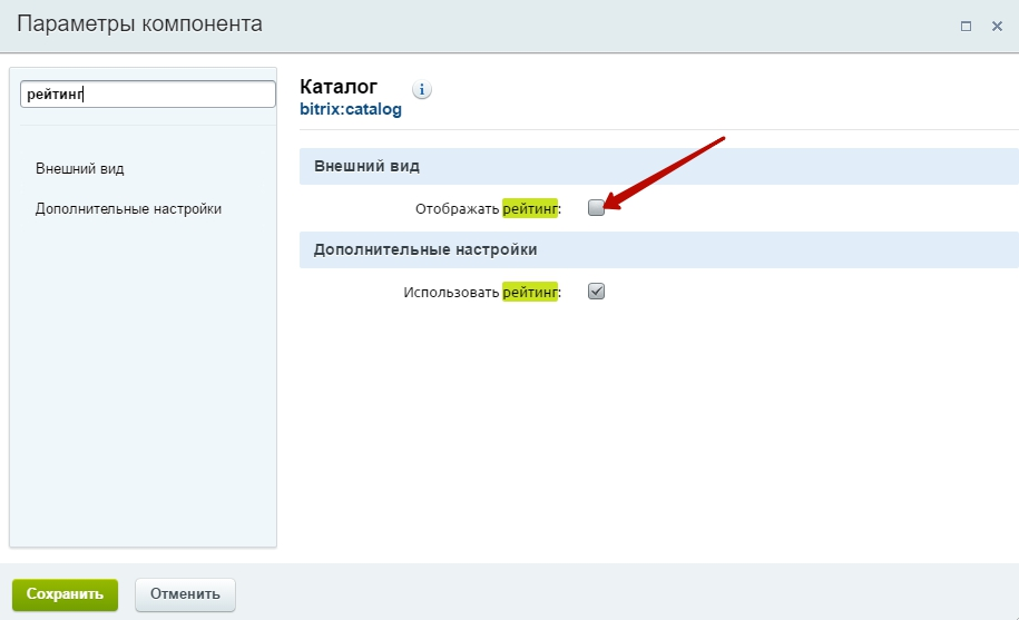 Если вы хотите, чтобы рейтинг не считался и не использовался, например, при вычислении популярных товаров для показа в персональных рекомендациях, перейдите к пункту «Дополнительные настройки» и уберите галочку в поле «Использовать рейтинг».