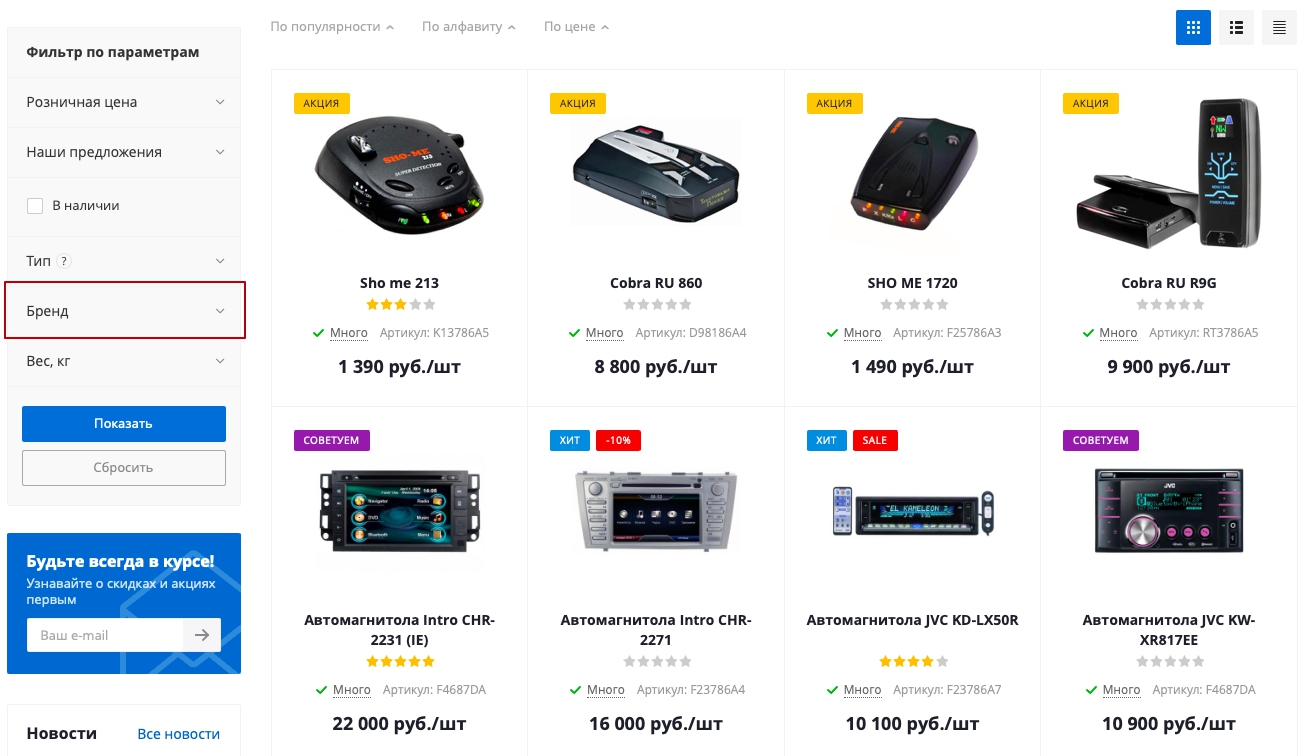 После смещения свойства «Бренд» на позицию ниже.