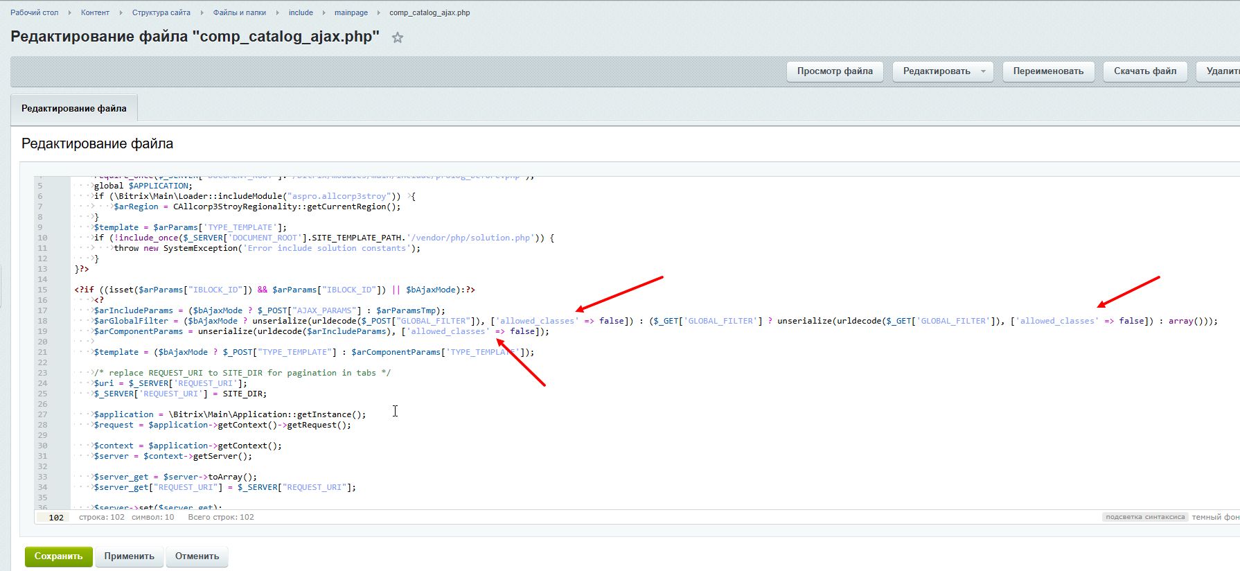 Если у вас вместо unserialize используется Solution::unserialize() или CAllcorp3Stroy::unserialize, то ничего добавлять не нужно. Эти методы уже содержат правку. То есть у вас установлено обновление, устраняющее эту уязвимость.