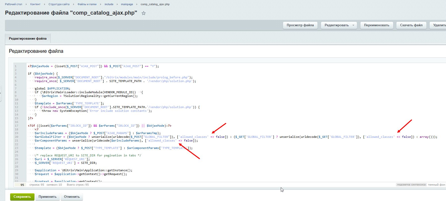 Файлы, содержащие уязвимость: