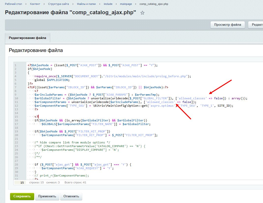 Если у вас вместо unserialize используется Solution::unserialize() или COptimus::unserialize, то ничего добавлять не нужно. Эти методы уже содержат правку. То есть у вас установлено обновление, устраняющее эту уязвимость.