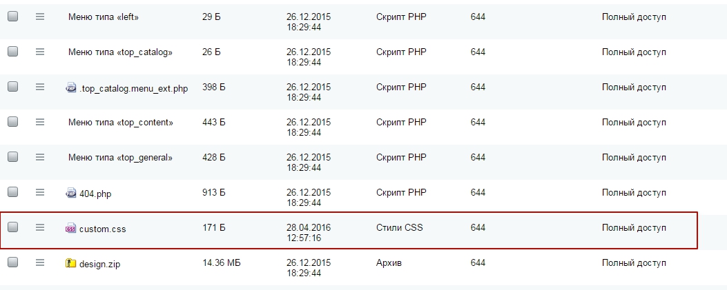 Перейдите в менеджер файлов и найдите файл custom.css. Если его нет, создайте его.