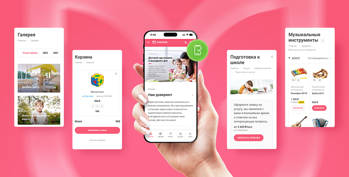 Сайту современного образовательного центра важно хорошо выглядеть не только на компьютере, но и на смартфоне. Весь контент и визуал автоматически адаптируются под экраны мобильных устройств. А нижняя панель навигации позволит удобно переходить по разделам.