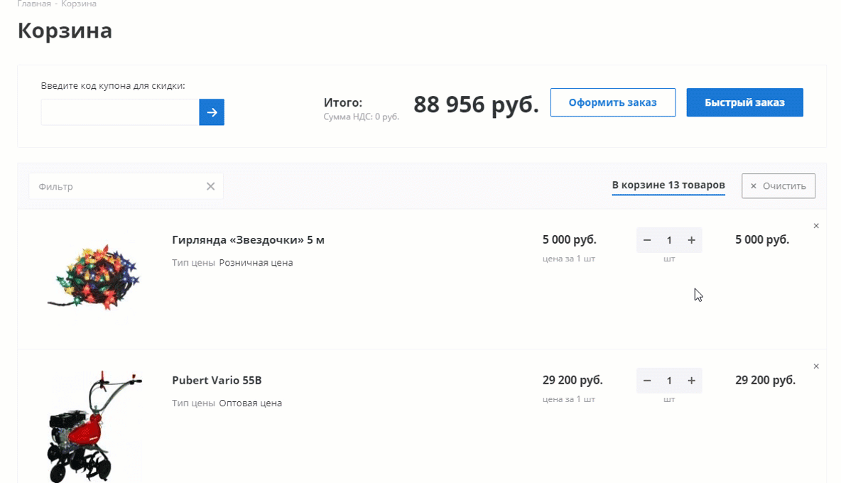 Новая корзина с фильтром, восстановлением удаленных товаров и отдельными настройками для мобильных