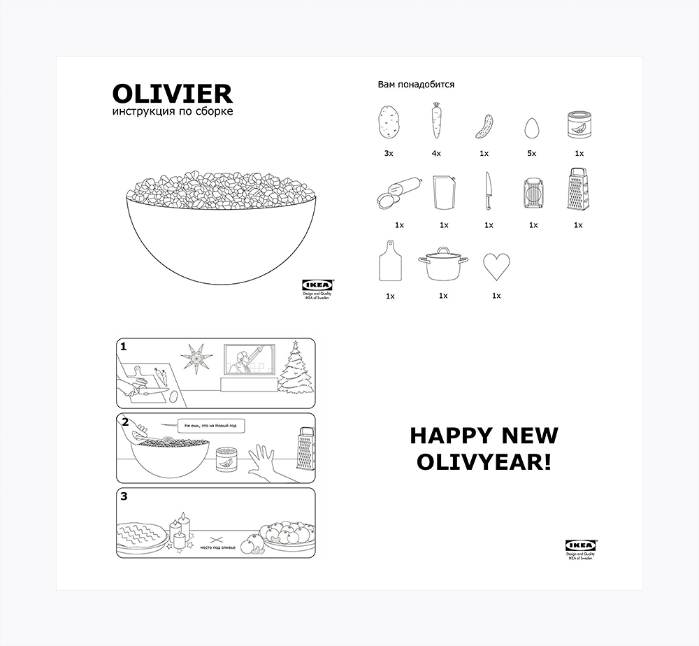 Сеть магазинов IKEA с юмором подошла к рекламе своего магазина. Шведская организация опубликовала инструкцию по сборке салата Оливье.