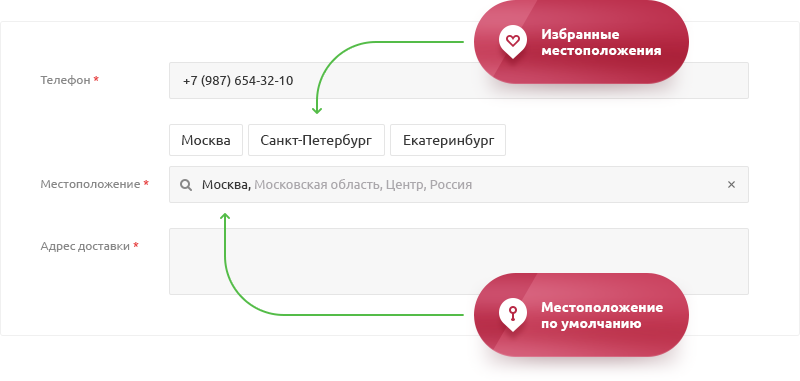 Данные опции позволяют существенно ускорить оформление заказа для интернет-магазинов, у которых большая часть клиентов сосредоточена в определенных городах.