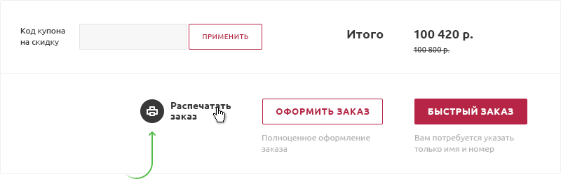В корзине появилась кнопка печати заказа. Есть несколько возможных сценариев ее использования. Например, для тех клиентов кто не любит оформлять заказ на сайте, а хочет потрогать товар живьем мы добавили возможность печати корзины. Некоторые клиенты предпочитают оформлять печатную форму в виде готового коммерческого предложения для согласования закупок с руководством.