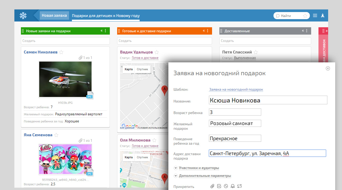 - Распределения задач. На доске можно ставить таски, выбирать исполнителей, указывать дедлайны и отслеживать этапы их выполнения.