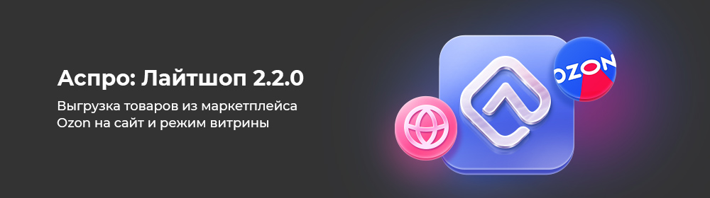 Но как быстро перенести все товары с маркетплейса на сайт? Этот вопрос решает готовый интернет-магазин Аспро: Лайтшоп. В решении доступна интеграция с площадкой Ozon. Все продукты каталога могут автоматически экспортироваться с торговой площадки на сайт и наоборот.