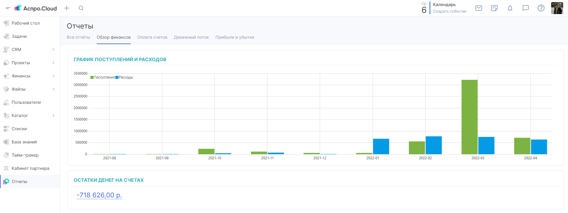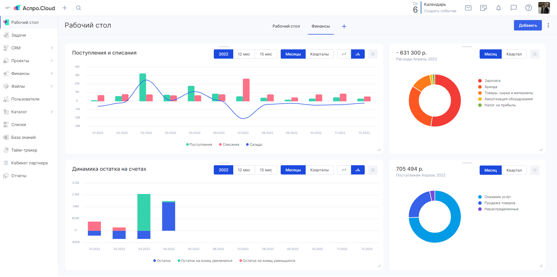 CRM-системы, они ведь совсем как снежинки. Их много, и все уникальные. Каждый старается сделать на чем-то акцент и выделиться среди конкурентов. Вот и мы при разработке Аспро.Cloud выбрали, что хотим сфокусироваться на удобстве ведения финансов. Ведь все любят считать деньги. Особенно когда это легко делает за вас ваша CRM-система. В этой статье мы расскажем, какие задачи бизнеса поможет решить платформа.