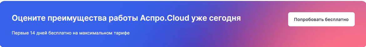 Аспро.Cloud поможет оптимизировать любые задачи бизнеса, чтобы агентство приносило прибыль, а клиенты всегда оставались довольны сотрудничеством с вами. Запишитесь на онлайн-демонстрацию системы или начните бесплатную работу в тестовом периоде уже сегодня.