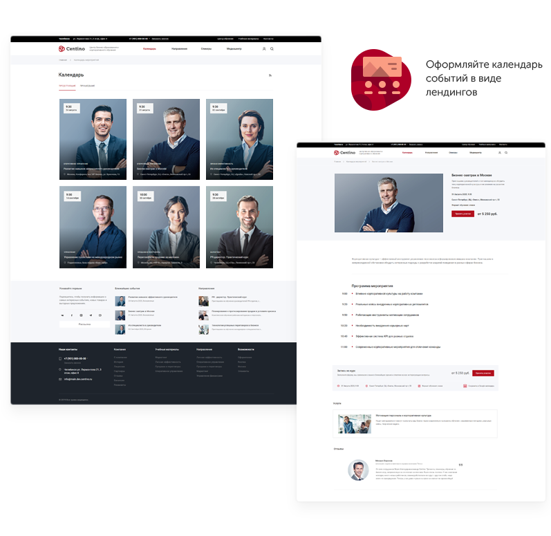 Курс — только вперед. Наши стратегические партнеры Centino выпустили уже второе отраслевое решение. Centino: Тренинги, семинары, обучение — корпоративный сайт для бизнес-образования и повышения квалификации.