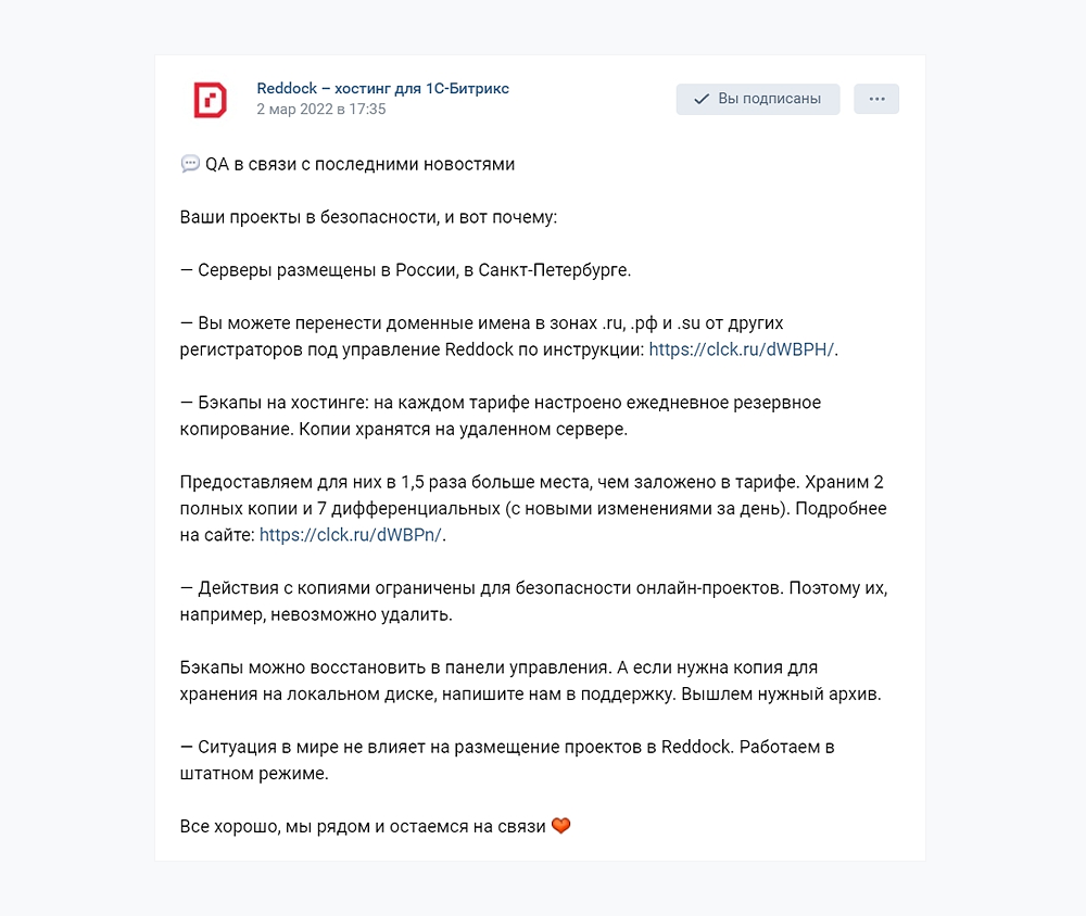 Помните, что это не навсегда. Остается только сохранить, ценить и не потерять то, что есть сейчас. Будьте пластичны, ищите отечественную альтернативу и сохраняйте голову в ясности. Чтобы оставаться на связи с другими владельцами сайтов и вместе следить за повесткой, присоединяйтесь к нашему чату.