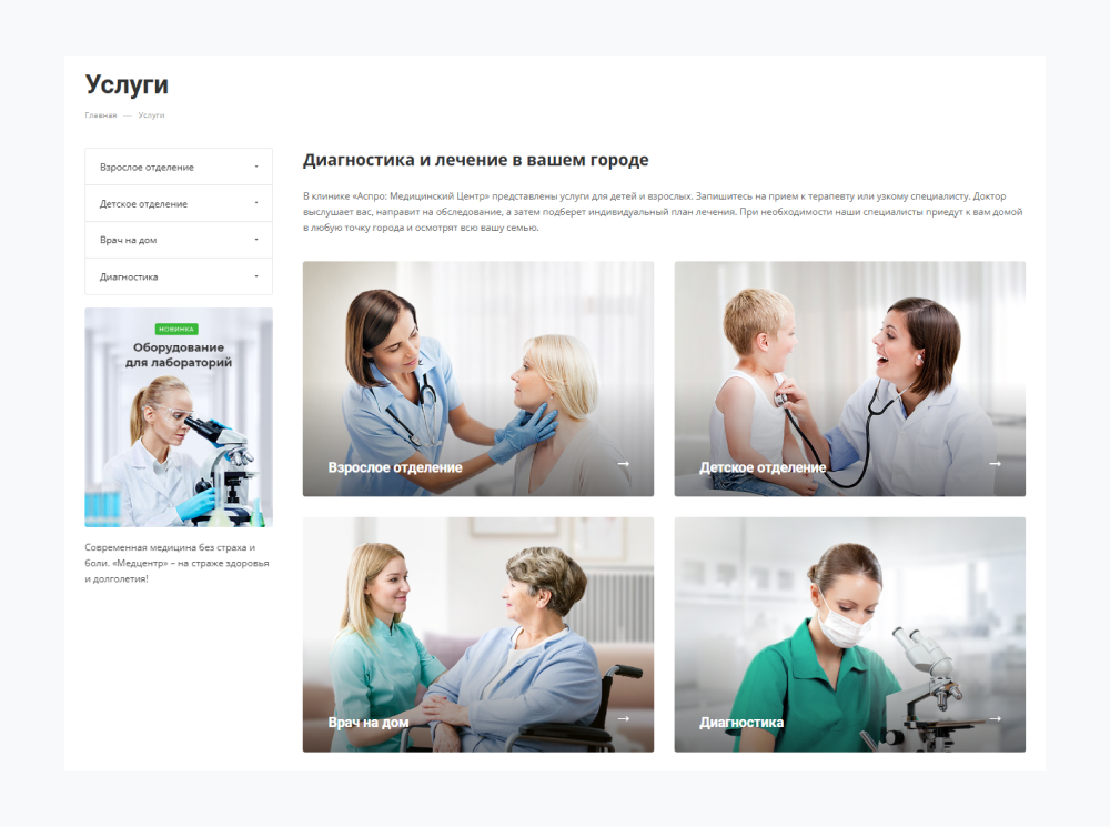 Раздел услуги в Аспро: Медицинский центр 3.0