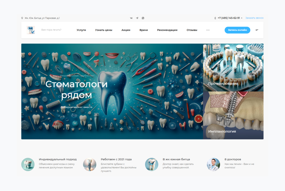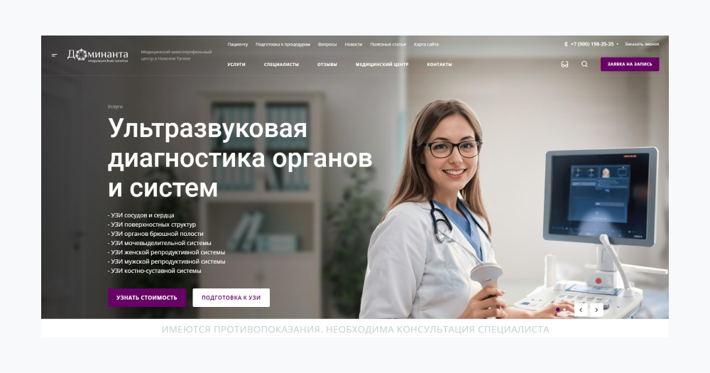Сайт — служит лицом медицинского учреждения в интернете и формирует представление о качестве предоставляемых услуг. Лучше уделить внимание UX/UI-дизайну, чтобы пользователям было удобно.