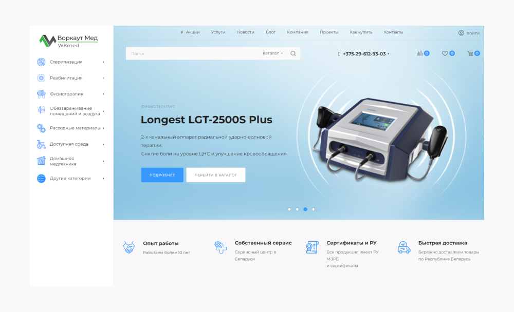Команда Аспро является одним из ведущих разработчиков готовых сайтов. Мы выпускаем решения для различных отраслей бизнеса уже более 10 лет. Наш продукт Аспро: Медицинский центр 3.0 подходит как для клиник, так и для интернет-магазинов по продаже оборудования. Советуем посмотреть примеры проектов в нашем каталоге сайтов.