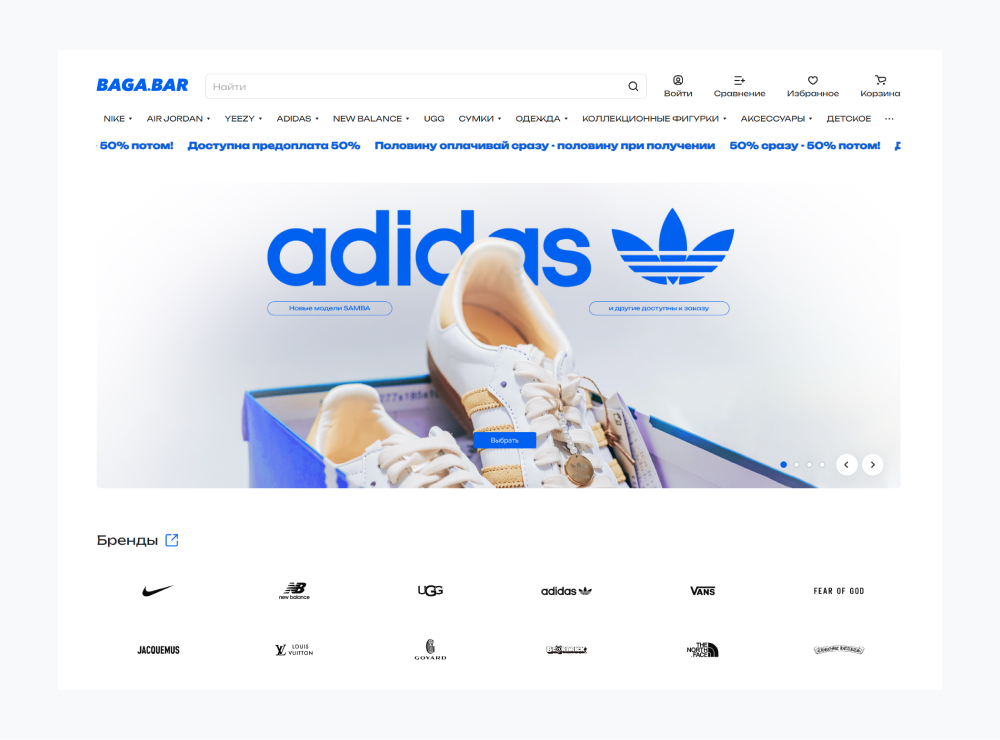 Иногда клиенты предпочитают искать товары конкретной фирмы. Чтобы упростить задачу, добавьте поиск по производителям. В отдельном разделе разместите карточки брендов, внутри которых будут находиться товары и описание.