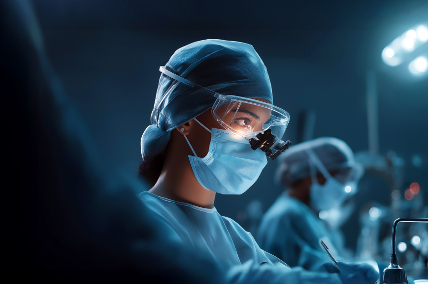 На главном баннере мы изобразили операционную комнату. Фон выполнили в холодных голубых тонах, что создает ощущение стерильности. На передний план вынесли операционный стол и хирургические инструменты.