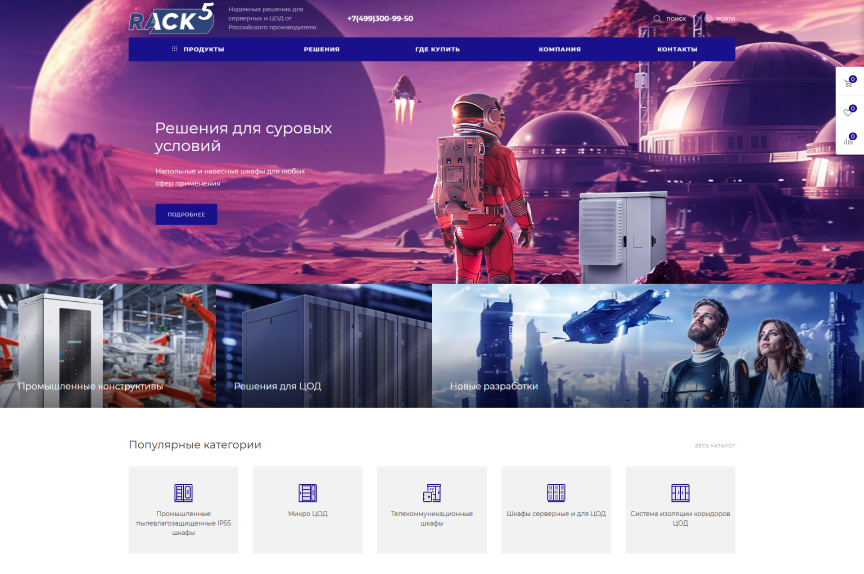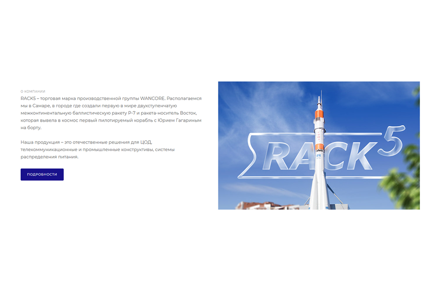 RACK5 — российский производитель решений для ЦОД, телеком-инфраструктуры, систем распределения питания и промышленных конструктивов. Сайт компании реализован на Аспро: Максимум.